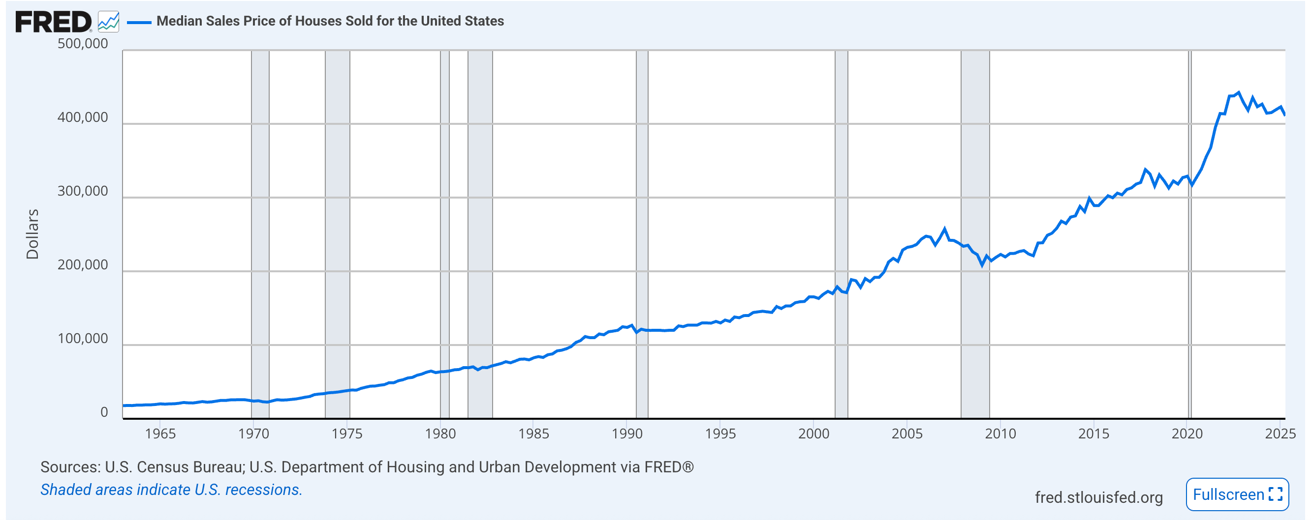 As I showed in The Great American Pay Cut, in 1950, the median home cost about 2.1 years of median household income. Today it’s over 5, and in a lot of markets closer to 10. Healthcare was a bill, not a bankruptcy event. College could be paid for with a summer job. One parent working a union job could carry a family of four into genuine stability—house, car, vacation, retirement.