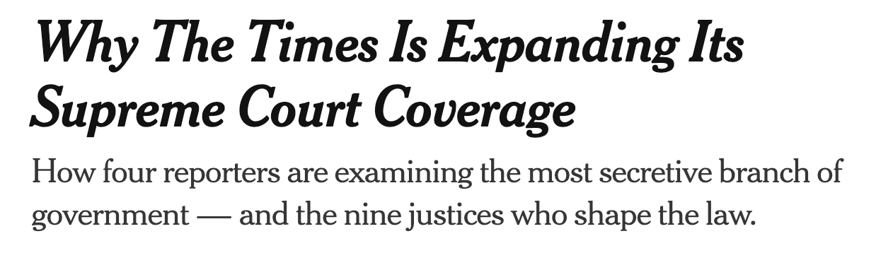 The New York Times just announced they’re expanding their Supreme Court coverage. Four reporters now dedicated to piercing the secrecy of America’s most secretive institution.