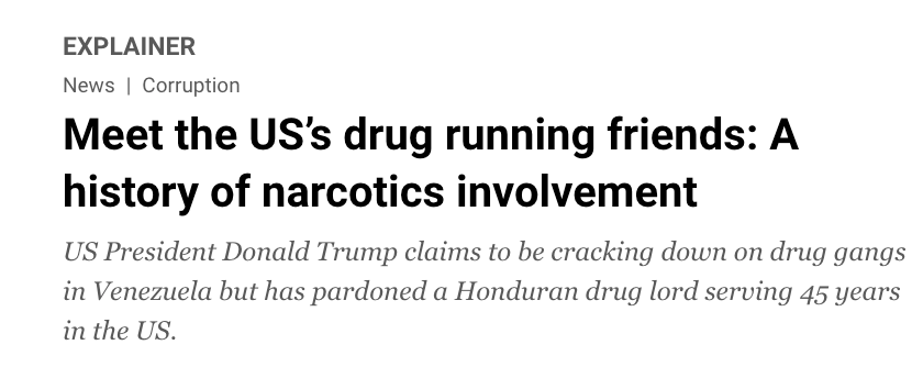 And even if it did—this is the same government that ran cocaine through Central America to fund the Contras, that looked the other way while our Afghan allies controlled the opium trade, that kept Noriega on the CIA payroll until he stopped being useful. We don’t have a problem with drug traffickers. We have a problem with drug traffickers who won’t cut us in.